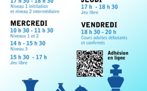 Pendant les vacances de Noël ! Animations d'échecs gratuites au club . Du lundi 23 au vendredi 27 décembre (sauf 25 décembre) Du jeudi 2 au vendredi 3 janvier . Tous les après-midi de 14h à 17h . Parties libres, parties à thèmes, tournois de blitz ou juste pour passer un bon moment ensemble !