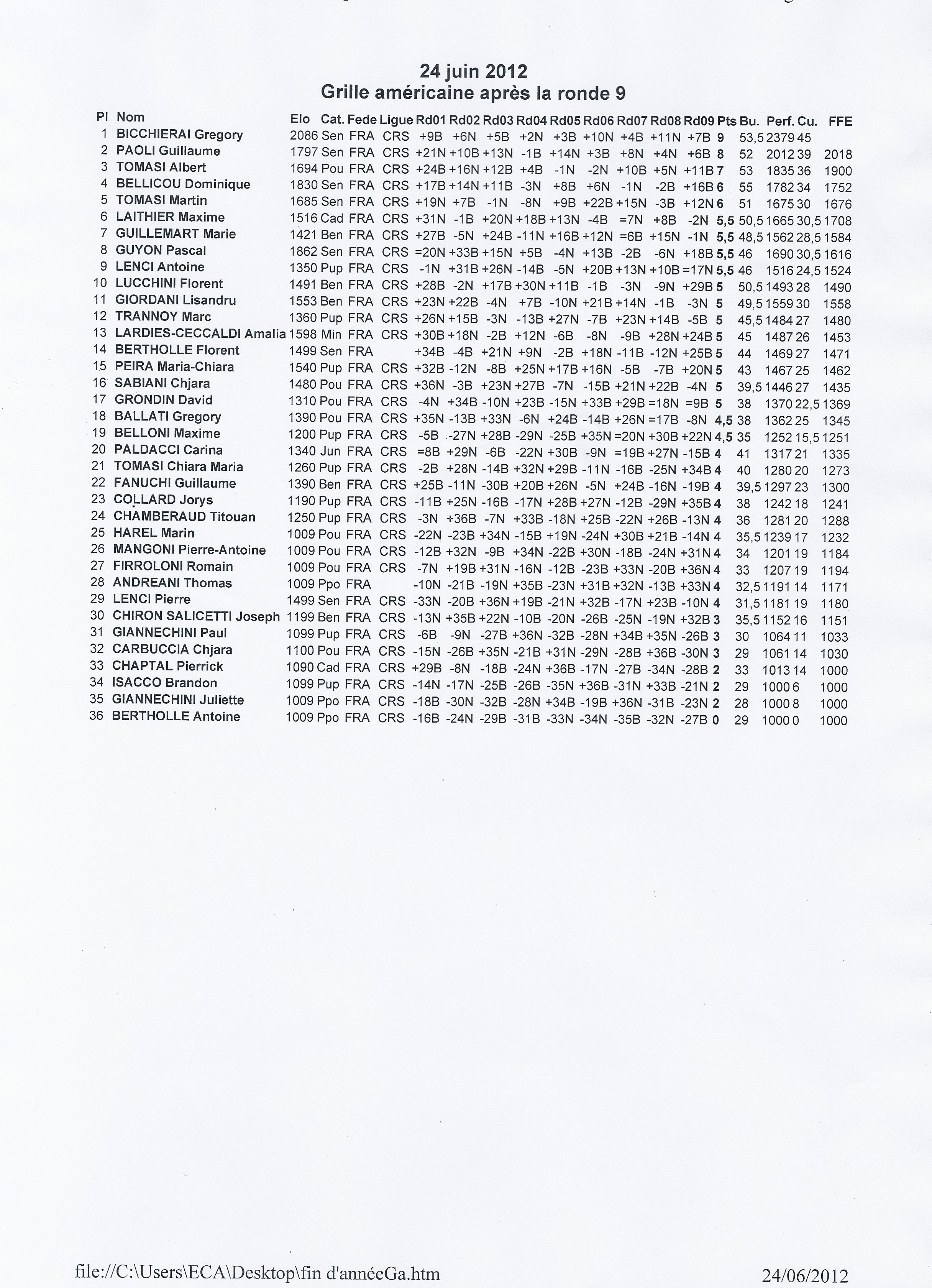 Les membres du bureau, afin de motiver les plus courageux en cette période de relachement (fin des cours pour les uns, révisons pour les autres et surtout farniente à l'ombre pour la plupart), ont decidé que le dernier tournoi de l'année sportive serait le support du championnat de blitz du grand Ajaccio ! Une manière de finir en apothéose une saison déjà bien riche en manifestations et en titres pour l'ECA ! Le grand absent de la journée aura été le Président du bureau des jeunes, Serge Guillemart, seul rescapé ajaccien et toujours en course pour décrocher le titre suprême de champion de Corse dans le cadre des rencontres qui ont lieu toute cette semaine dans les locaux du Corsica Chess Club.